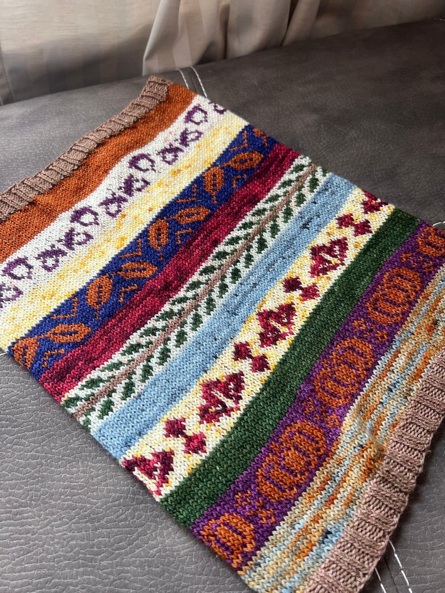 Made completely with mini skeins in mind, I present to you the Falling into Autumn Cowl! It celebrates all the colors and autumn goodies the season has to offer! This stash-busting knit has both mindless stockinette stitch and cute color work to keep you relaxed and entertained throughout your knitting journey! This is a great project for those looking to hone their color work skills!